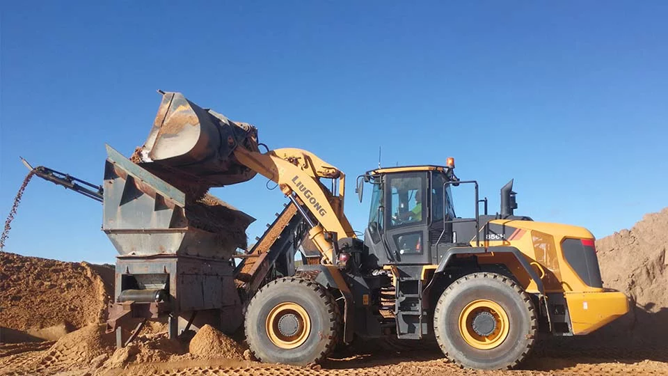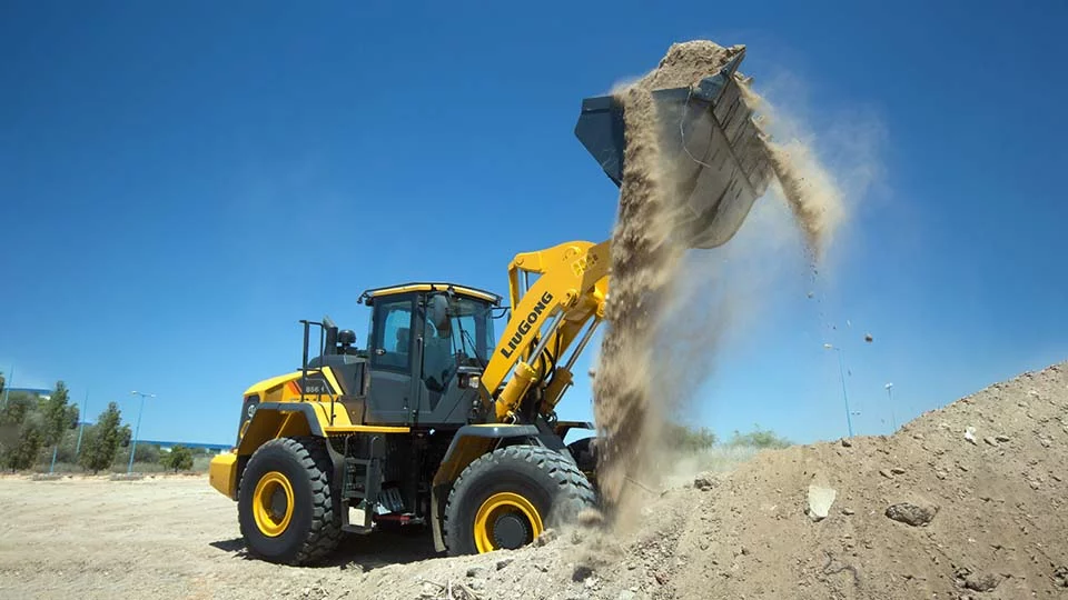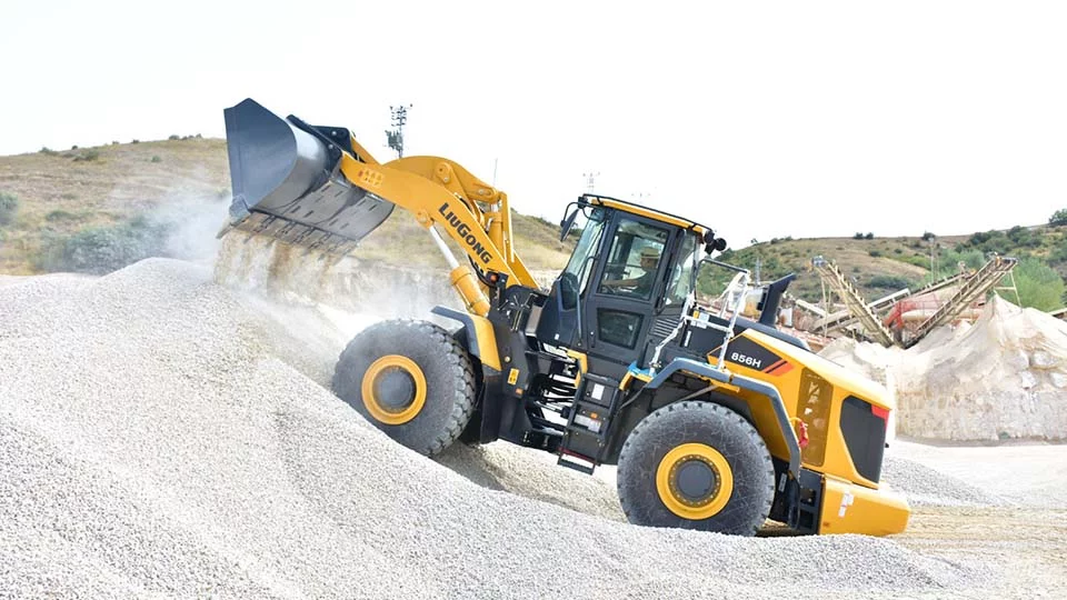 Фронтальный погрузчик LiuGong 856H с вместимостью стандартного ковша 3,3 м³ и грузоподъемностью 5 тонн – это высокоэффективный цикл, скорость и устойчивость.